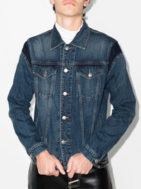logo-embossed denim jacket Alexander McQueen adds a touch of logomania to the classic denim jacket. Designed with an embossed logo to the back, this piece is finished with tonal shoulder panels that showcase the house's rebellious aesthetic. Made in Italy Composition Outer: Cotton 100% Lining: Polyester 65%, Cotton 35% Washing instructions Machine Wash