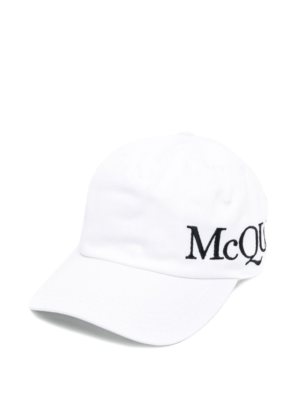 logo-embroidered baseball cap Cap off your laid-back look with this cotton baseball cap from Alexander McQueen. Designed with an embroidered logo to the side, this casual accessory is sure to elevate your off-duty ensemble. Highlights - White - Cotton - Embroidered logo to the side - Curved peak - Adjustable strap to the rear - Logo-embossed patch to the rear Made in Italy Composition Lining: Cotton 100% Outer: Cotton 100% SIZE & FIT Measurement CIRCUMFERENCE 22.44 in(57 cm) BRIM 2.75 in(7 cm)