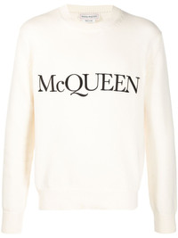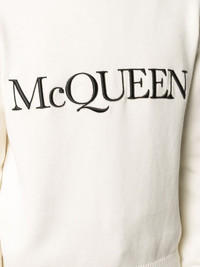 Mcqueen Embroidered Crew Neck Sweater in Ivory/black