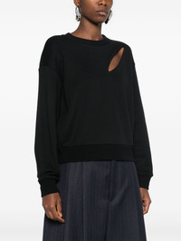 logo-embroidered sweatshirt Highlights - Black - Cotton - Embroidered logo to the rear - Cut-out detailing - Crew neck - Drop shoulder - Long sleeves - Ribbed cuffs and hem Made in Italy Composition Cotton 100%, Polyester 100% SIZE & FIT Model measurements Height 5 ft 10 in(1.78 m) Bust/Chest 31.49 in(80 cm) Hips 37 in(94 cm) Waist 23.62 in(60 cm) FittingInformation Designed for a relaxed fit, this piece allows for comfort and movement when worn Made from a midweight non-stretch fabric, this piece offers minimal elasticity when worn This piece fits true to size – take your usual size