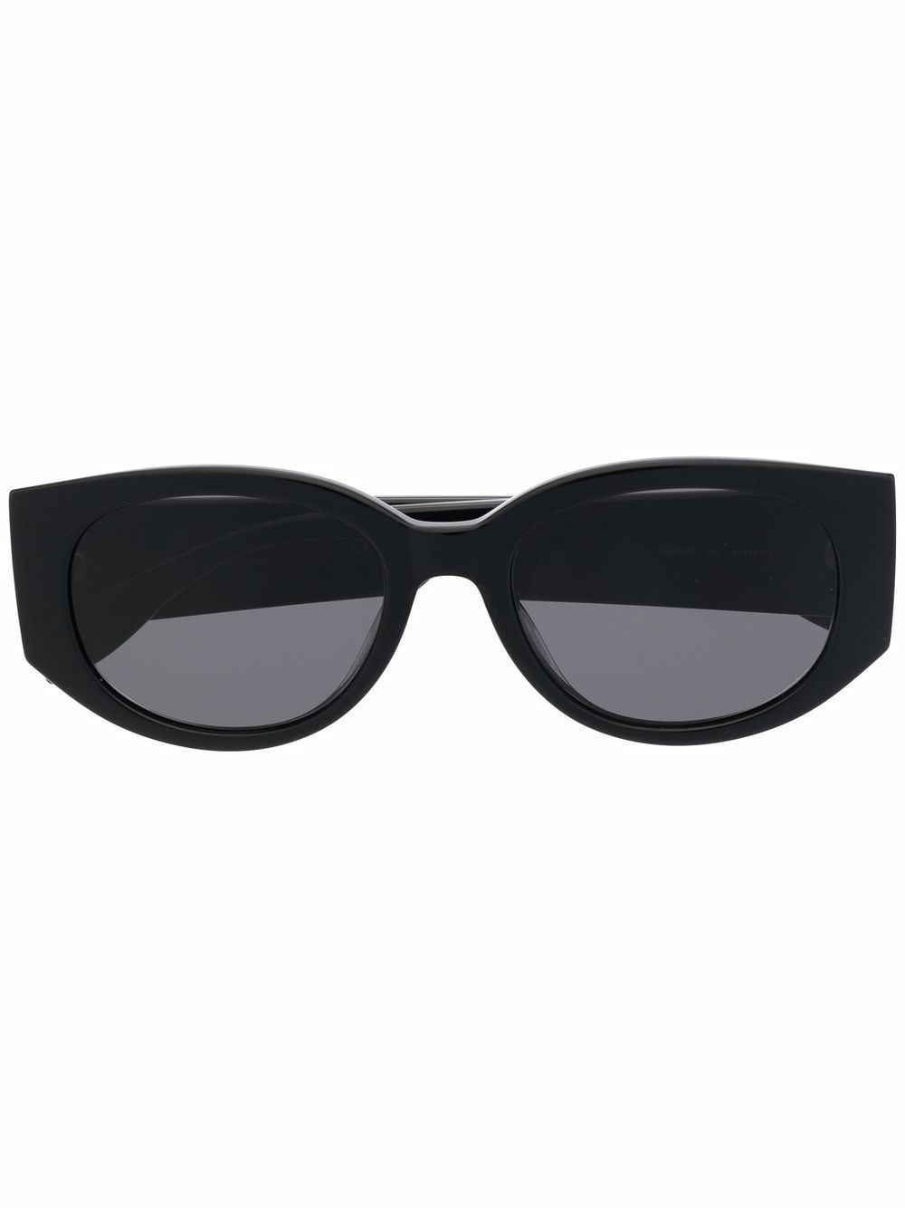 logo lettering sunglasses black/red round frame grey tinted lenses logo print at the arm straight arms curved tips All glasses from FARFETCH are sold as non-prescription frames. These glasses come with a protective case. Made in Italy Composition Acetate 100% SIZE & FIT Measurement Arm Length 5.7 in(14.5 cm) Total Width 5.62 in(14.3 cm) Bridge Width 0.74 in(1.9 cm) Lens Diameter 2.12 in(5.4 cm)