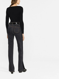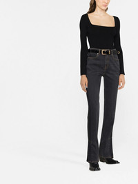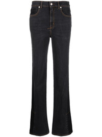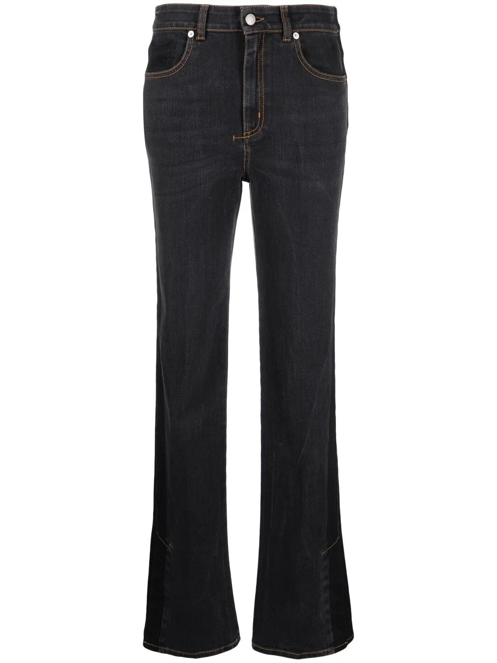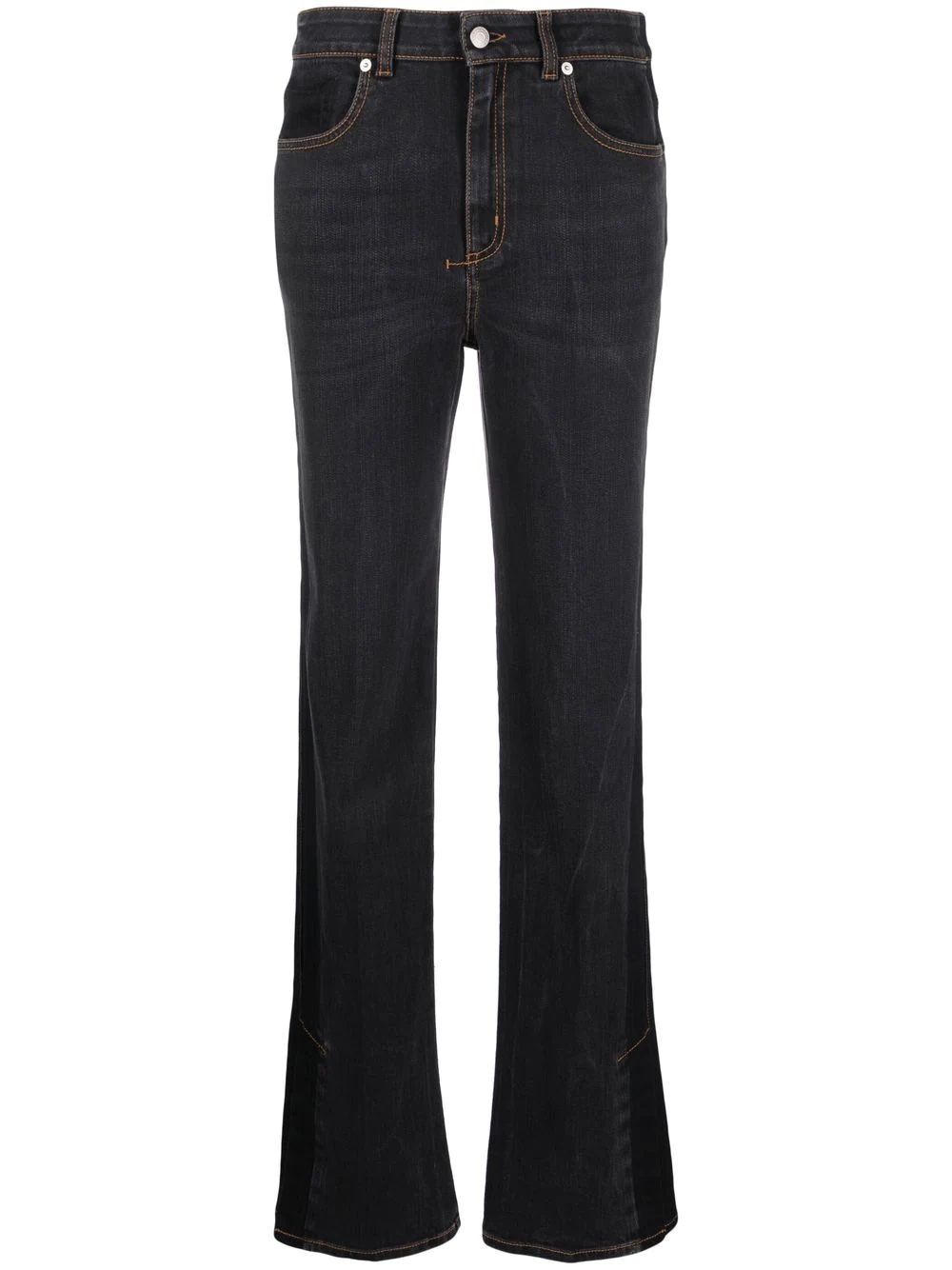 logo-patch bootcut jeans logo-patch bootcut jeans from Alexander McQueen featuring black, cotton blend, stonewashed, logo patch to the rear, contrast stitching, bootcut, belt loops and front button and zip fastening. Made in Italy Composition Outer: Cotton 96%, Spandex/Elastane 4% Lining: Polyester 65%, Cotton 35% SIZE & FIT Model measurements Height 5 ft 10 in(1.77 m) Bust/Chest 32.28 in(82 cm) Hips 34.64 in(88 cm) Waist 24.4 in(62 cm) FittingInformation This piece fits true to size. We recommend you get your regular size Designed to be fitted at the waist and hips, loose over the leg Made with a mid-weight stretch fabric Washing instructions Machine Wash