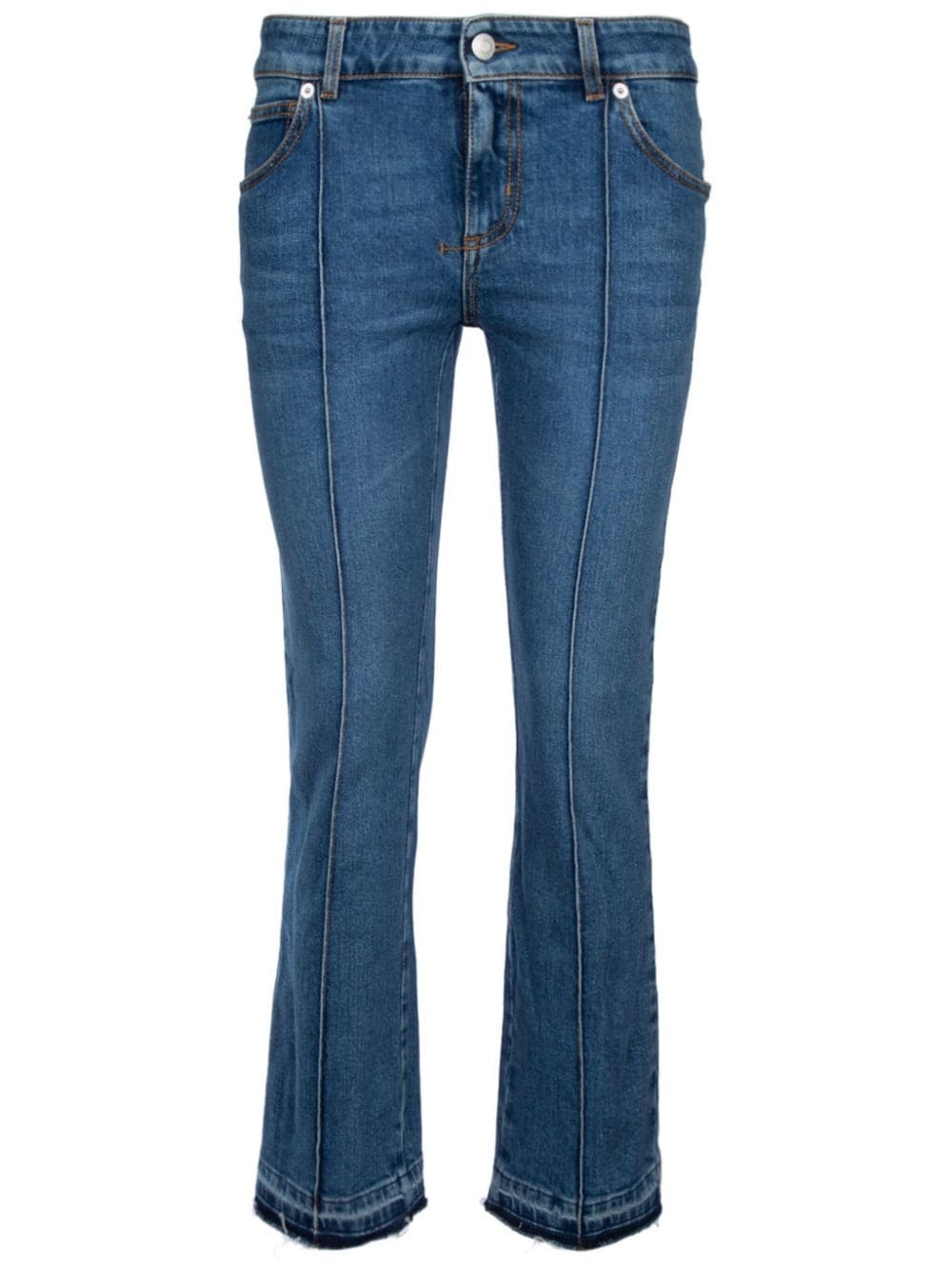 logo-patch flared jeans Highlights - Blue - Cotton - Denim - Front button and zip fastening - Belt loops - Classic five pockets - Logo patch to the rear Made in Italy Composition Cotton 100%