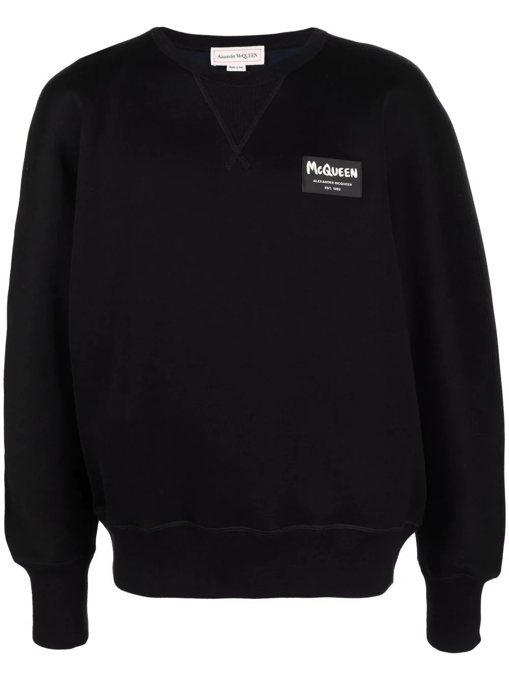 logo-patch sweatshirt Alexander McQueen keeps things simple and contemporary with this sweatshirt. The two-tone design allows the front logo patch to take the focus. Imported Composition Polyester 90%, Cotton 62%, Polyamide 38%, Silk 10% SIZE & FIT Model measurements Height 6 ft 2 in(1.89 m) Bust/Chest 35.43 in(90 cm) Hips 36.61 in(93 cm) Waist 28.74 in(73 cm) Measurement CHEST 45.66 in(116 cm) FittingInformation This piece fits true to size. We recommend you get your regular size Cut for a relaxed fit Made with a mid-weight fabric Washing instructions Machine Wash