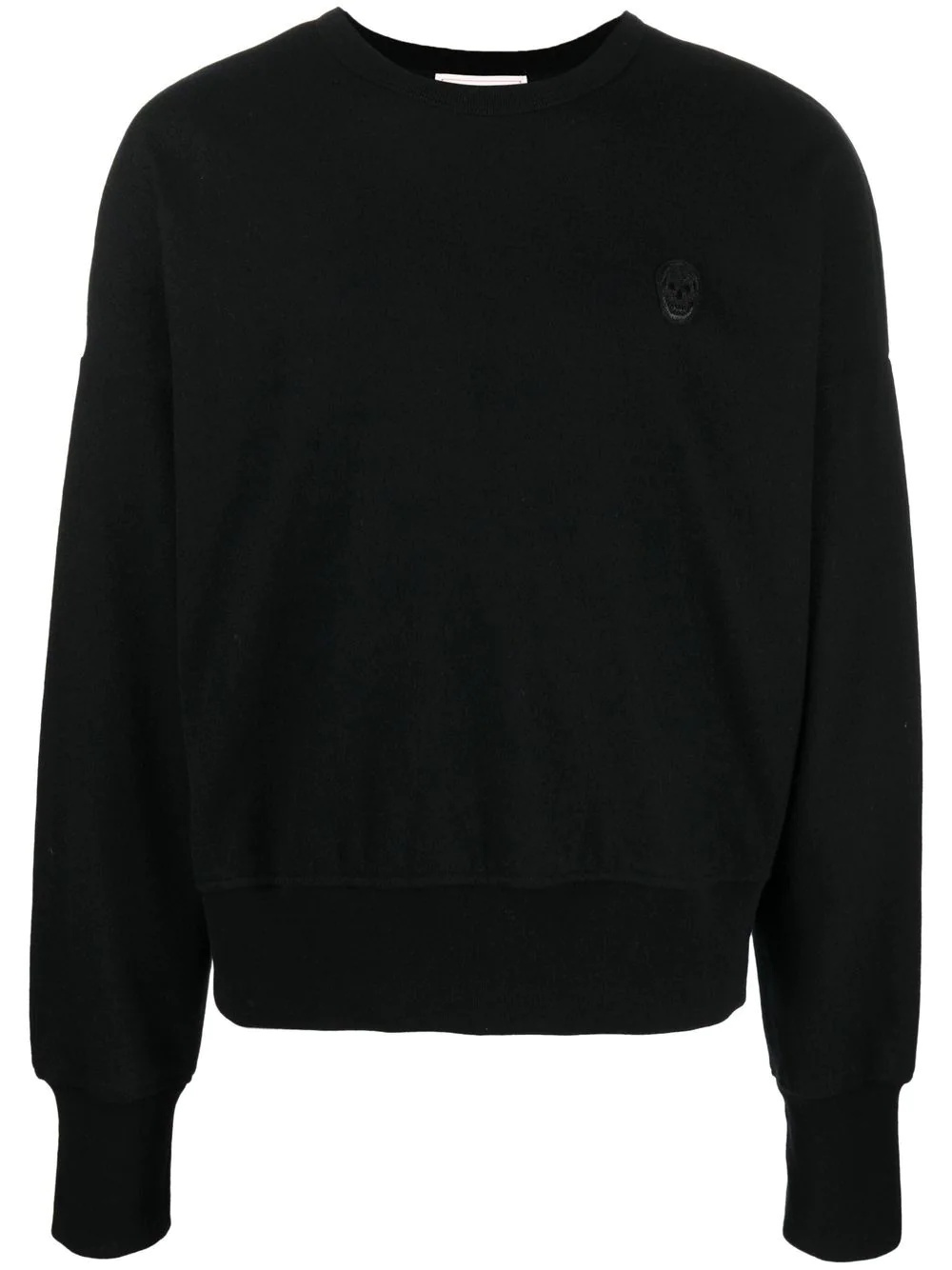 logo-patch wool sweatshirt black wool-cashmere blend logo patch at the chest crew neck long sleeves straight hem Made in Italy Composition Wool 90%, Metallic Fibre 73%, Polyester 27%, Cashmere 10% SIZE & FIT Model measurements Height 6 ft 3 in(1.9 m) Bust/Chest 38.18 in(97 cm) Hips 37.79 in(96 cm) Waist 32.67 in(83 cm) FittingInformation This piece fits true to size. We recommend you get your regular size Cut for a relaxed fit Made with a mid-weight fabric