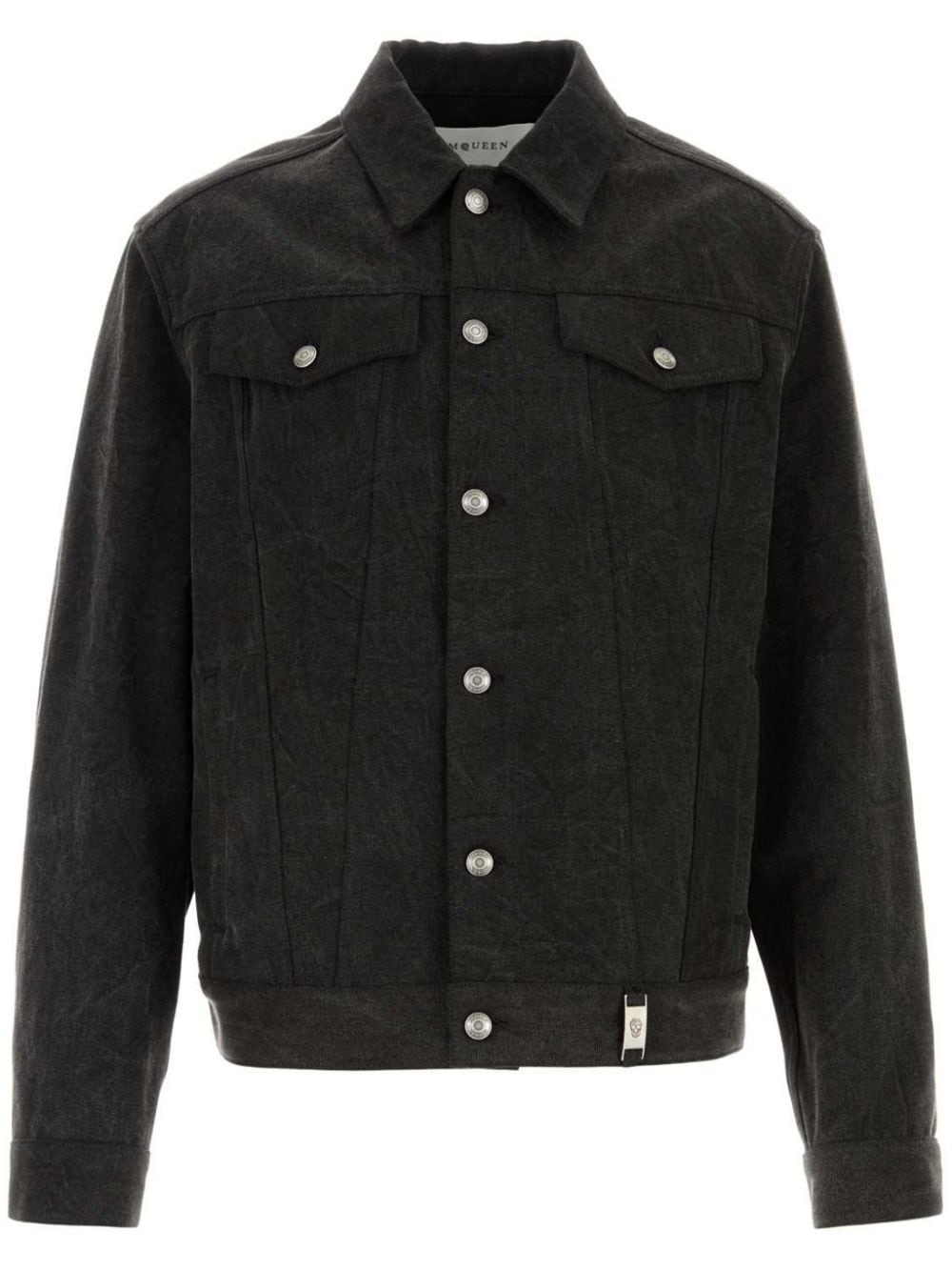 logo-plaque denim jacket Highlights - Slate grey - Cotton - Denim - Silver-tone logo plaque - Front button fastening - Classic collar - Two button-fastening chest pockets - Long sleeves - Buttoned cuffs - Decorative-button waist tabs - Straight hem Made in Italy Composition Cotton 100%
