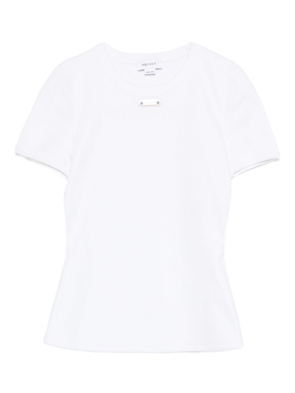 logo-plaque knitted top Highlights - White - Short sleeves - Round neck - Logo plaque - Straight hem Made in Italy Composition Fabric 100% SIZE & FIT Model measurements Height 5 ft 9 in(1.75 m) Bust/Chest 34.64 in(88 cm) Hips 36.61 in(93 cm) Waist 26.37 in(67 cm) Washing instructions Read Manufacturer Guidelines