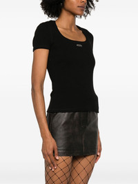 logo-plaque T-shirt Highlights - Black - Scoop neck - Short sleeves - Straight hem Made in Italy Composition Cotton 98%, Elastane 2% SIZE & FIT Model measurements Height 5 ft 11 in(1.8 m) Bust/Chest 32.67 in(83 cm) Hips 35.82 in(91 cm) Waist 25.98 in(66 cm) FittingInformation Designed for a close fit throughout Made from a midweight stretch fabric, this piece offers elasticity and flexibility when worn