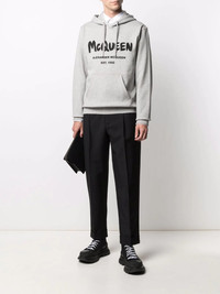 logo-print hoodie Your casual wardrobe just got more stylish. And you have this logo-print hoodie from Alexander McQueen to thank for that. Comfort never looked so good. Highlights - Grey - Cotton - Logo print to the front - Drawstring hood - Front pouch pocket - Long sleeves Made in Italy Composition Cotton 100% SIZE & FIT Model measurements Height 6 ft 1 in(1.86 m) Bust/Chest 35.43 in(90 cm) Hips 35.43 in(90 cm) Waist 29.92 in(76 cm) FittingInformation This piece fits true to size. We recommend you get your regular size Cut for a relaxed fit Made with a mid-weight fabric Washing instructions Machine Wash