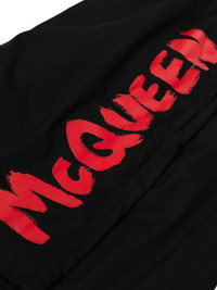 McQueen Garffiti-print swim shorts Highlights - Black/ruby red - Logo print to the front and rear - Elasticated waistband with drawstring - Thigh-length - Mesh lining - Be mindful to try on swimwear over your own garments. Made in Italy Composition Outer: Polyamide 100% Lining: Polyamide 100% SIZE & FIT Measurement WAIST 27.55 in(70 cm)