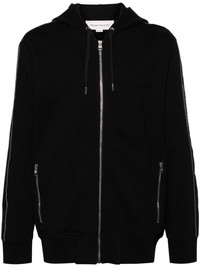 logo-trimmed cotton hoodie Highlights - Black - Cotton - Jersey texture - Logo trim - Drawstring hood - Front zip fastening - Long sleeves - Ribbed cuffs and hem - Front zip fastening pockets - French terry lining Imported Composition Outer: Polyester 100%, Cotton 100% Lining: Cotton 100% SIZE & FIT Model measurements Height 6 ft 2 in(1.87 m) Bust/Chest 36.41 in(92.5 cm) Hips 37 in(94 cm) Waist 29.52 in(75 cm) FittingInformation Designed for a relaxed fit, this piece allows for comfort and movement when worn The ribbed hem offers a close, comfortable fit Made from a midweight non-stretch fabric, this piece offers minimal elasticity when worn This piece fits true to size – take your usual size Washing instructions Machine Wash