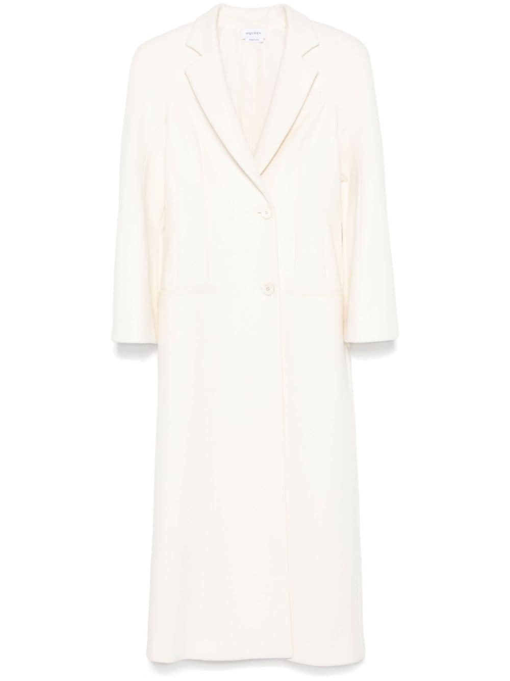 moulded-shoulder double-breasted coat Highlights - Ivory white - Wool-cashmere blend - Felted - Moulded shoulder pads - Double-breasted button fastening - Notched lapels - Long sleeves - Chest welt pocket - Dart detailing - Two side welt pockets - T-bar chain back detail - Rear slit - Full lining - Straight hem - Full-length Made in Italy Composition Lining: Viscose 55%, Cotton 45% Outer: Wool 90%, Cashmere 10% SIZE & FIT Model measurements Height 5 ft 10 in(1.77 m) Bust/Chest 32.28 in(82 cm) Hips 35.03 in(89 cm) Waist 25.19 in(64 cm) FittingInformation Designed for a slim fit that sits just away from the body offering a close yet comfortable fit The internal shoulder pads offer a structured shape Made from a midweight non-stretch fabric Washing instructions Dry Clean Only