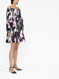 off-shoulder abstract-print minidress Alexander McQueen brings signature drama to this minidress with an off-shoulder design, puff sleeves and painterly abstract print. Made in Italy Composition Cotton 100% SIZE & FIT Model measurements Height 5 ft 10 in(1.78 m) Bust/Chest 29.92 in(76 cm) Hips 34.64 in(88 cm) Waist 23.62 in(60 cm) Washing instructions Dry Clean Only