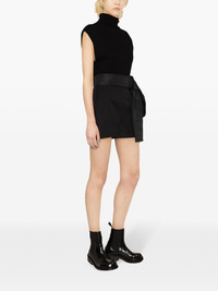bow-detail tailored shorts Alexander McQueen is celebrated for its dramatic silhouettes in dark colour palettes, like these tailored shorts. They're crafted in Italy in grain de poudre wool and punctuated with a satin tuxedo belt and oversized bow that's softly draped on the side. Highlights - Black - Wool - Tailored design - Pintuck detailing - Dart detailing - Oversize bow detail - High-waisted - Pressed crease - Concealed side zip fastening - Rear welt pocket - Straight leg - Above-knee length Made in Italy Composition Outer: Wool 100%, Polyester 100% Lining: Cupro 100% SIZE & FIT Model measurements Height 5 ft 10 in(1.79 m) Bust/Chest 31.49 in(80 cm) Hips 35.03 in(89 cm) Waist 23.62 in(60 cm) FittingInformation Designed for a slim fit that sits just away from the body offering a close yet comfortable fit Made from a midweight non-stretch fabric This piece fits true to size – take your usual size Washing instructions Dry Clean Only