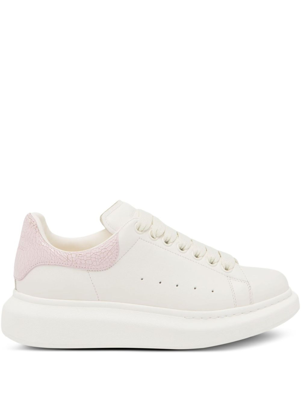 Oversized leather panelled sneakers Highlights - White - Leather upper - Pink panel - Lace-up fastening - Oversize rubber sole - Round toe - To lessen the environmental impact and to reduce cotton consumption, alexander mcqueen will no longer be providing a dust bag with its sneakers. Made in Italy Composition Lining: Leather 100% Sole: Rubber 100% Outer: Leather 100%