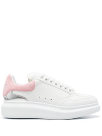 Oversized leather sneakers Highlights - White/pink/silver-tone - Calf leather - Panelled design - Round toe - Logo-print tongue - Contrasting branded heel counter - Branded leather insole - Rubber sole - Front lace-up fastening Made in Italy Composition Leather 100% SIZE & FIT Measurement HEEL 1.77 in(4.5 cm) Sole height 1.18 in(3 cm)