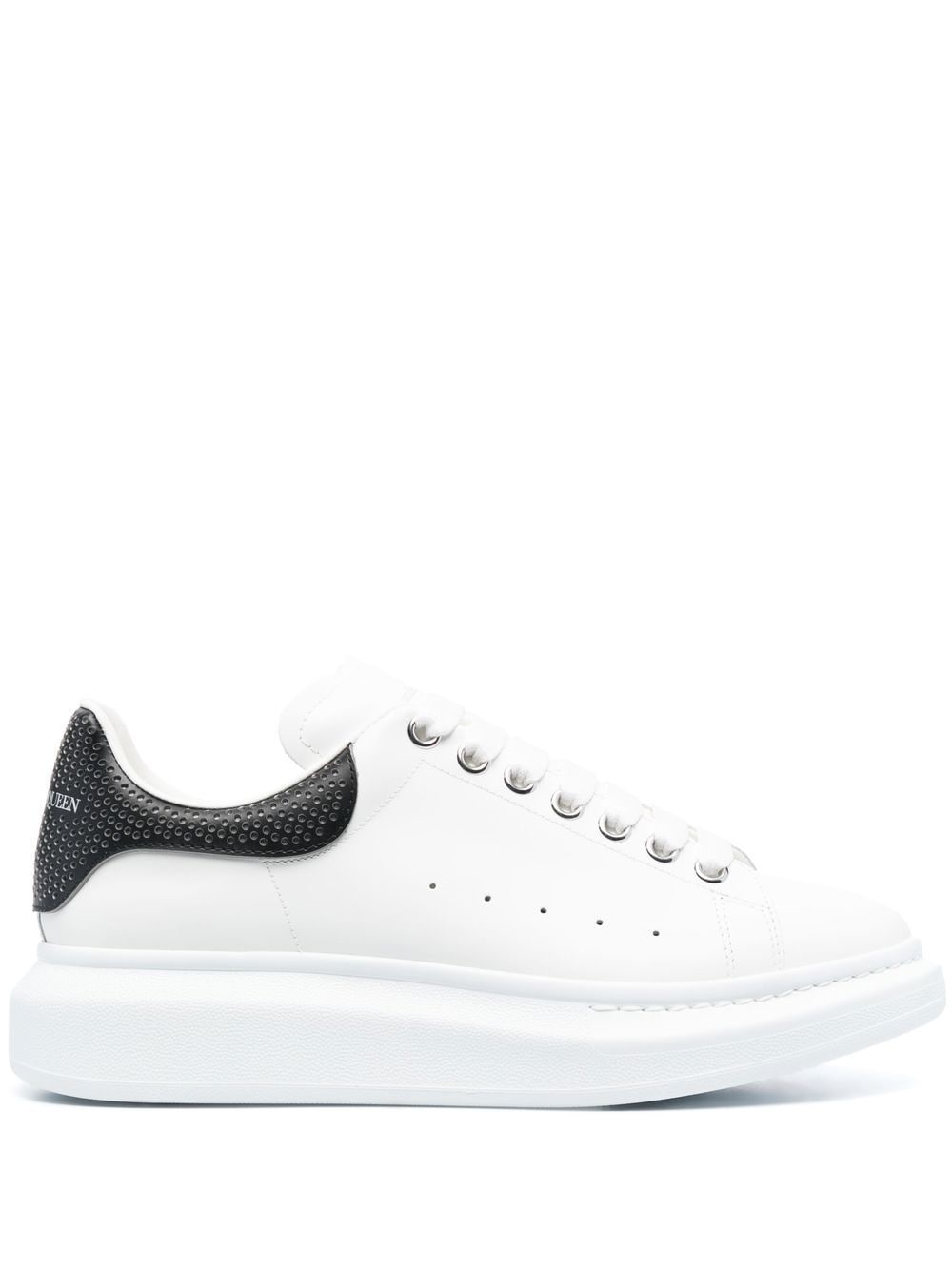 Oversized low-top leather sneakers white/black calf leather perforated detailing front lace-up fastening logo-print tongue round toe contrasting branded heel counter flat rubber sole Made in Italy Composition Sole: Rubber 100% Outer: Leather 100% Lining: Calf Leather 100% SIZE & FIT Measurement HEEL 1.96 in(5 cm) Sole height 1.37 in(3.5 cm)