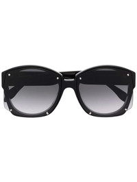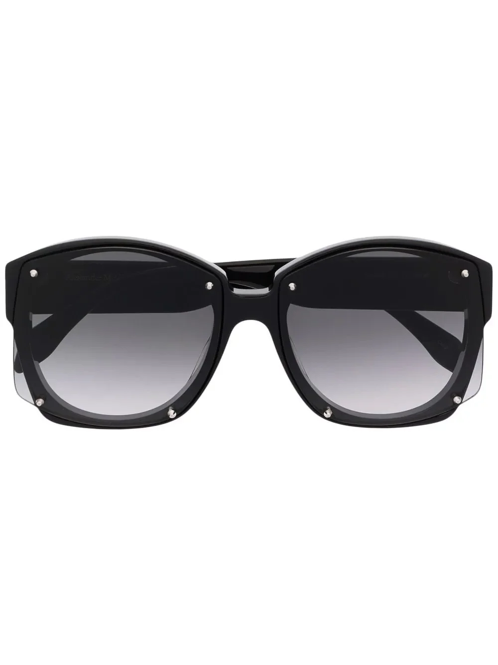 oversized round-frame sunglasses black silver-tone hardware gradient lenses straight arms curved tips These glasses come with a protective case. Made in Italy Composition Acetate 100% SIZE & FIT Measurement Arm Length 5.7 in(14.5 cm) Bridge Width 0.62 in(1.6 cm) Lens Diameter 2 in(5.1 cm) Total Width 5.59 in(14.2 cm)