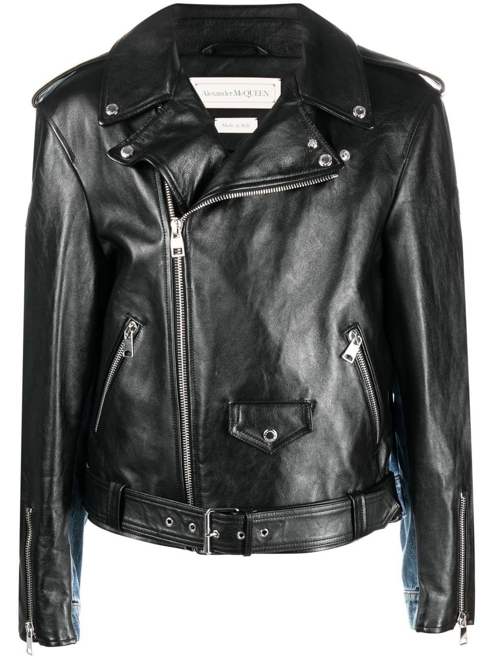 panelled biker jacket black/blue cotton/calf leather belted waist panelled design front zip fastening pockets off-centre front zip fastening notched collar long sleeves cuff zips straight hem Made in Italy Composition Lining: Viscose 100%, Cotton 100%, Polyester 95%, Polyamide 5% Outer: Cotton 100% SIZE & FIT Model measurements Height 6 ft 2 in(1.87 m) Bust/Chest 35.82 in(91 cm) Hips 35.43 in(90 cm) Waist 27.95 in(71 cm) FittingInformation This piece fits true to size. We recommend you get your regular size Cut for a loose fit Made with a mid-weight non-stretch fabric Washing instructions Specialist Cleaning