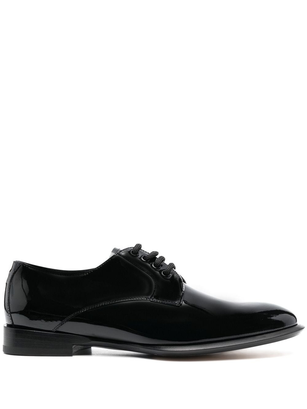patent-leather Oxford shoes black calf leather patent finish almond toe front lace-up fastening branded leather insole flat sole Made in Italy Composition Outer: Patent Calf Leather 100% Lining: Calf Leather 100% Sole: Calf Leather 100% SIZE & FIT Measurement HEEL 1.18 in(3 cm) Sole height 0.78 in(2 cm)