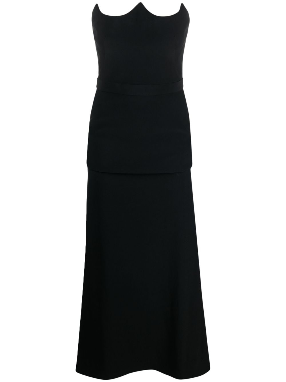 Peak Corset crepe dress Alexander McQueen is coveted for its elegantly deviant designs like this black evening dress, which is differentiated by its sculptural, peaked neckline. It’s cut from black crepe and falls to a subtly flared floor-length skirt that swishes with each step. Highlights - Black - Crepe texture - Scallop neckline - Boned bodice - Strapless - Fitted waistline - Concealed rear zip fastening - Floor-length Made in Italy Composition Outer: Viscose 52%, Acetate 48% Lining: Acetate 74%, Silk 26% SIZE & FIT Model measurements Height 5 ft 10 in(1.78 m) Bust/Chest 31.49 in(80 cm) Hips 35.03 in(89 cm) Waist 23.62 in(60 cm) Measurement HIPS 36.22 in(92 cm) LENGTH 56.69 in(144 cm) WAIST 27.95 in(71 cm) FittingInformation Designed for a slim fit that sits just away from the body offering a close yet comfortable fit The internal bodice offers support and shape Made from a midweight non-stretch fabric This piece fits true to size – take your usual size Washing instructions Dry Clean Only
