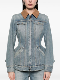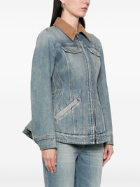peplum denim jacket Highlights - Light blue - Front two-way zip fastening - Corduroy collar - Two chest flap pockets - Two side welt pockets Made in Italy Composition Outer: Cotton 100% Lining: Cupro 100%, Polyester 65%, Cotton 35% SIZE & FIT Model measurements Height 5 ft 10 in(1.78 m) Bust/Chest 33.46 in(85 cm) Hips 36.22 in(92 cm) Waist 23.22 in(59 cm) FittingInformation Designed for a close fit at the chest and waist with a loose fit at the hip Sturdy and hard-wearing, this denim piece offers no stretch