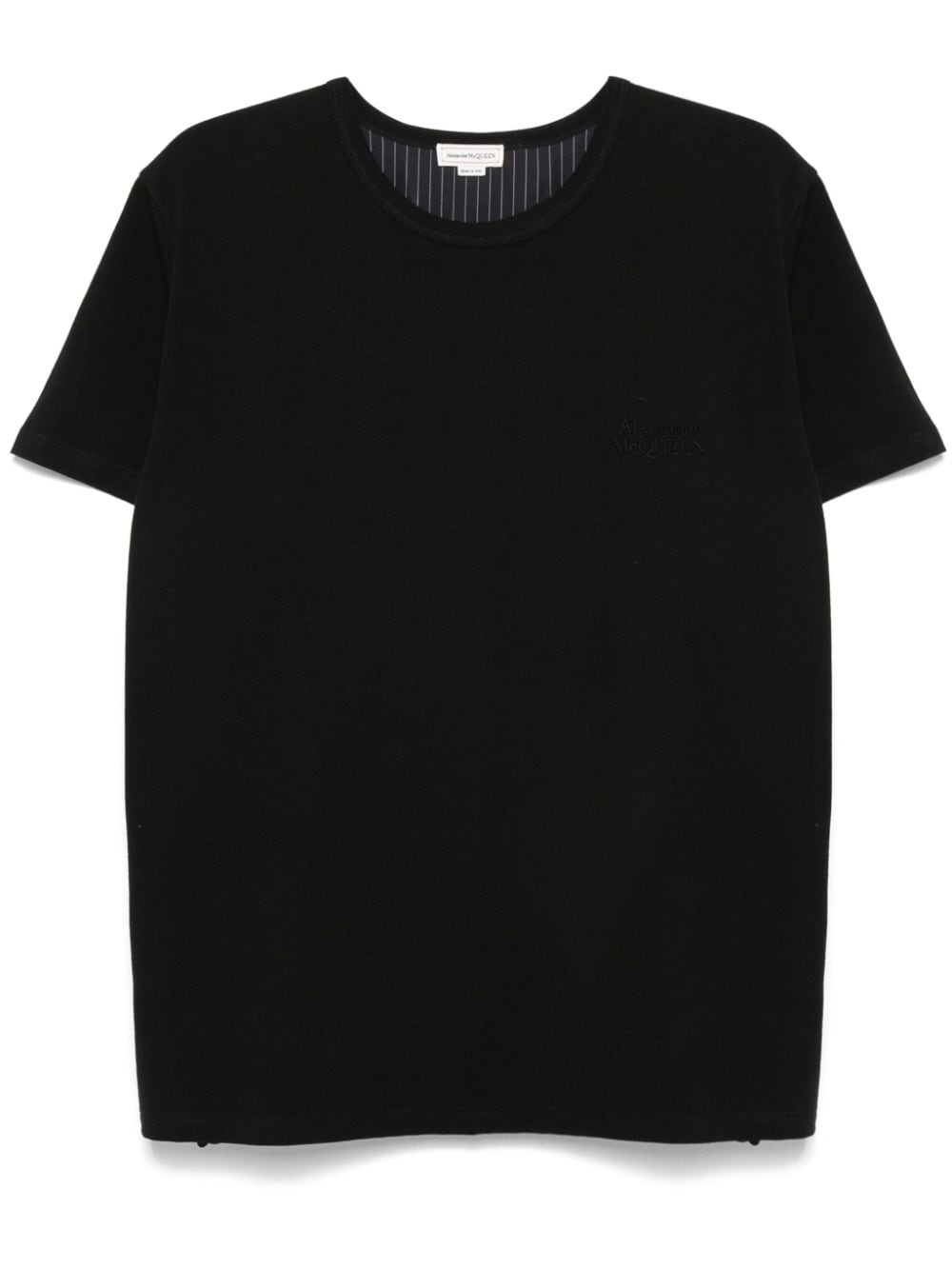 pinstripe-panel T-shirt Highlights - Black/white - Cotton - Lightweight jersey - Poplin texture - Crew neck - Short sleeves - Embroidered logo at the chest - Pinstripe panel - Drawstring hem Made in Italy Composition Cotton 100%, Viscose 100% SIZE & FIT Model measurements Height 6 ft 2 in(1.87 m) Bust/Chest 36.22 in(92 cm) Hips 37 in(94 cm) Waist 27.95 in(71 cm) FittingInformation Designed to be unstructured, offering a loose fit throughout Made from a midweight non-stretch fabric, this piece offers minimal elasticity when worn