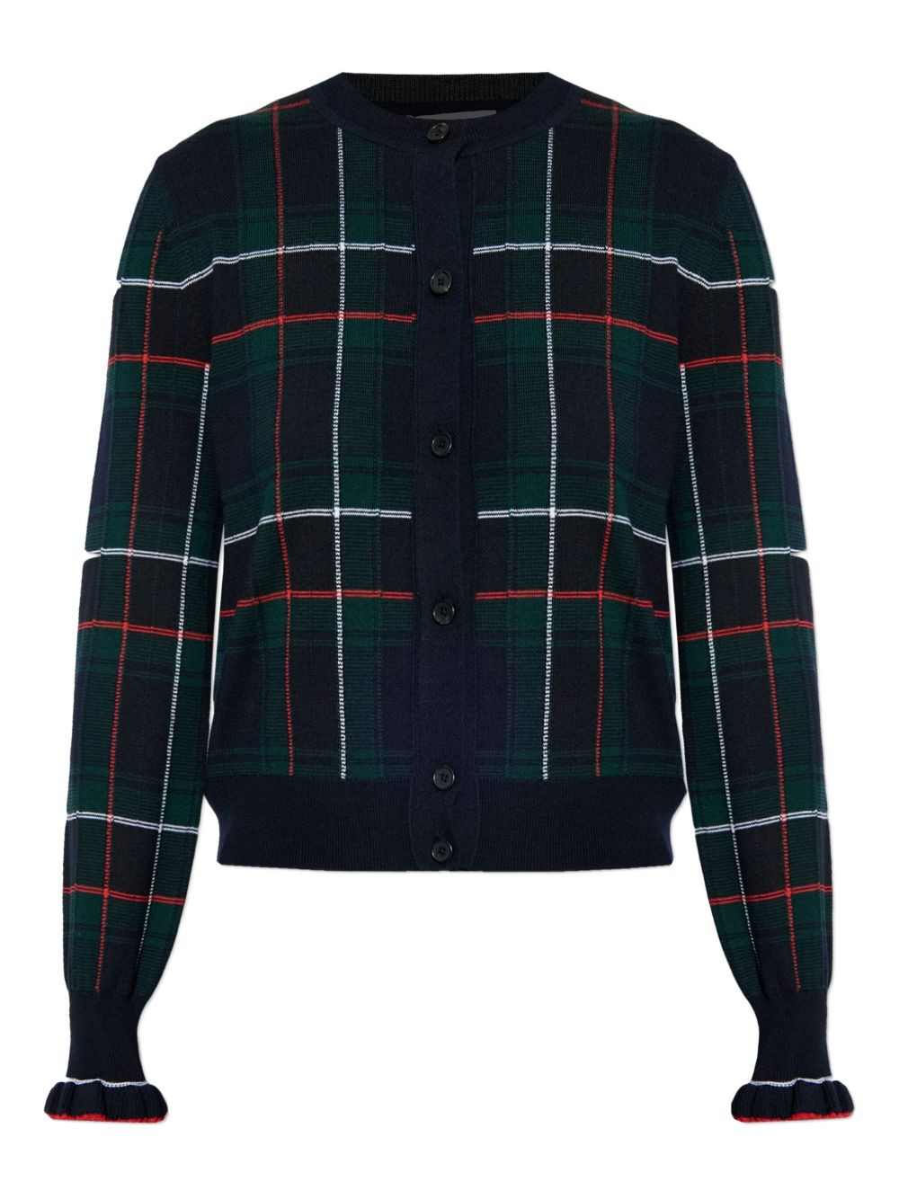 plaid ruffled-cuff cardigan Highlights - Navy blue - Plaid pattern - Button fastening - Ribbed cuffs - Ruffled detailing - Wool Made in Italy Composition Wool 100% Washing instructions Read Manufacturer Guidelines