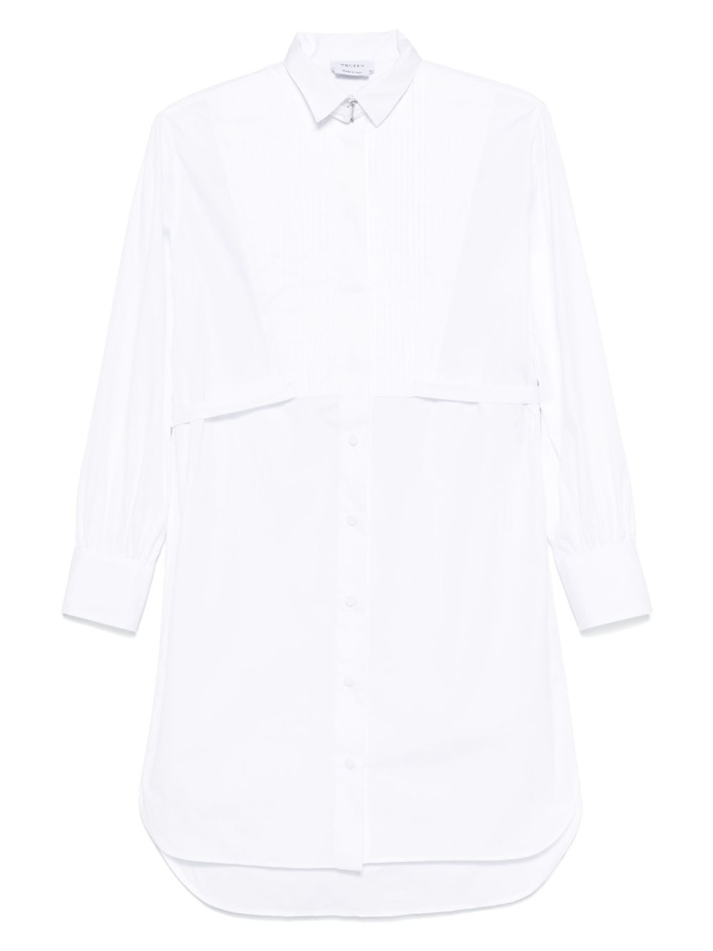 pleated panel shirt dress Highlights - White - Pleated panel - Button front - Three-quarter sleeves - Curved hem - Collared neck Made in Italy Composition Cotton 100% SIZE & FIT Model measurements Height 5 ft 10 in(1.79 m) Bust/Chest 35.43 in(90 cm) Hips 35.03 in(89 cm) Waist 25.19 in(64 cm) FittingInformation Designed to be unstructured, offering a loose fit throughout The adjustable tie waist gives a more adaptable and personalised fit Made from a midweight non-stretch fabric Washing instructions Dry Clean Only