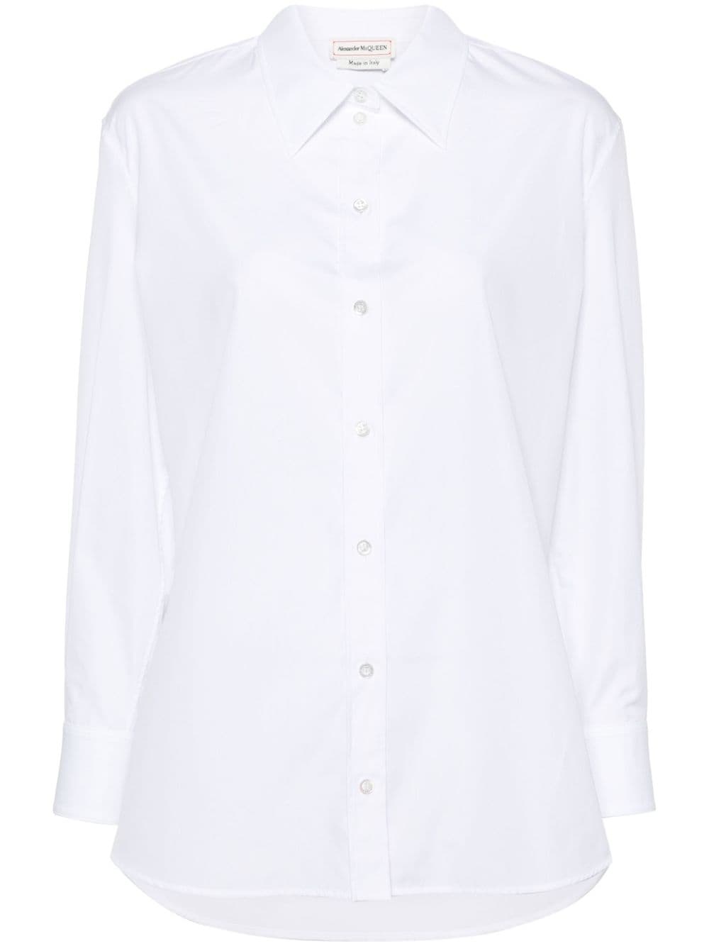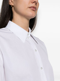poplin cotton shirt Highlights - Optical white - Cotton - Poplin texture - Classic collar - Front button fastening - Long sleeves - Buttoned cuffs - Curved hem Made in Italy Composition Cotton 100% SIZE & FIT Model measurements Height 5 ft 11 in(1.8 m) Bust/Chest 33.07 in(84 cm) Hips 37.4 in(95 cm) Waist 25.19 in(64 cm) Measurement SLEEVE LENGTH 29.52 in(75 cm) LENGTH 28.74 in(73 cm) WAIST 42.51 in(108 cm) BUST 45.66 in(116 cm) FittingInformation Designed to be unstructured, offering a loose fit throughout Made from a midweight non-stretch fabric This piece fits true to size – take your usual size Washing instructions Dry Clean Only