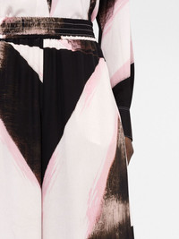 printed high-waist trousers Evocative of Alexander McQueen's modern gothic style, these wide-leg trousers are patterned with an irregular painterly print in sharp contrasts of black, white and pink. Made in Italy Composition Outer: Silk 100% Lining: Silk 100% SIZE & FIT Model measurements Height 5 ft 10 in(1.77 m) Bust/Chest 32.28 in(82 cm) Hips 35.03 in(89 cm) Waist 25.19 in(64 cm) FittingInformation This piece fits true to size. We recommend you get your regular size Designed to be fitted at the waist and hips, loose over the leg Made with a mid-weight non-stretch fabric Washing instructions Dry Clean Only
