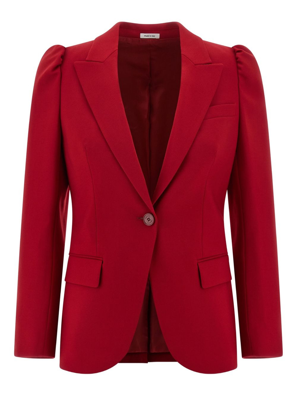 puff-sleeve single-breasted blazer Highlights - Red - Peak lapels - Single-breasted fastening - Flap pockets - Structured shoulders - Back vent Made in Italy Composition Wool 98%, Elastane 2%