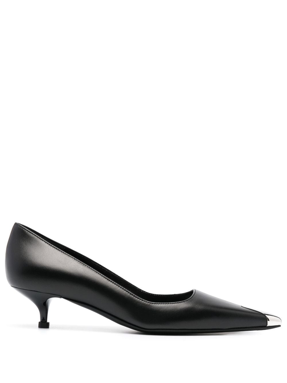 Punk 45mm pumps Alexander McQueen's Punk pumps embody the British label's rebellious spirit: they're punctuated with a polished silver-tone toecap. They're crafted from black leather and set on a mid stiletto heel. Highlights - Black - Calf leather - Branded footbed - Slip-on style - Metal toecap - Pointed toe Made in Italy Composition Lining: Leather 100% Outer: Calf Leather 100% Sole: Calf Leather 100% SIZE & FIT Measurement HEEL 1.77 in(4.5 cm)