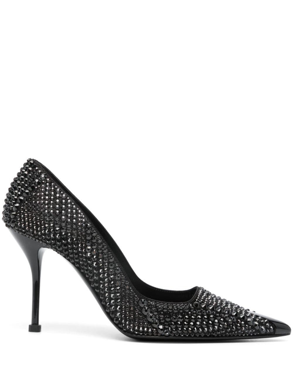 Punk 90mm crystal-embellished pumps Alexander McQueen's black Punk pumps take their name and inspirations from rebellious subcultures – from the scores of spiked crystal embellishments to the metal trim that nods to steel-toed styles. Highlights - Black - Calf leather - Crystal embellishment - Pointed toe - Metal toecap - Tonal toecap - Slip-on style - Branded leather insole - Leather outsole - Stiletto heel Made in Italy Composition Outer: Calf Leather 100%, Viscose 100% Sole: Calf Leather 100% Lining: Calf Leather 100% SIZE & FIT Measurement HEEL 3.54 in(9 cm)