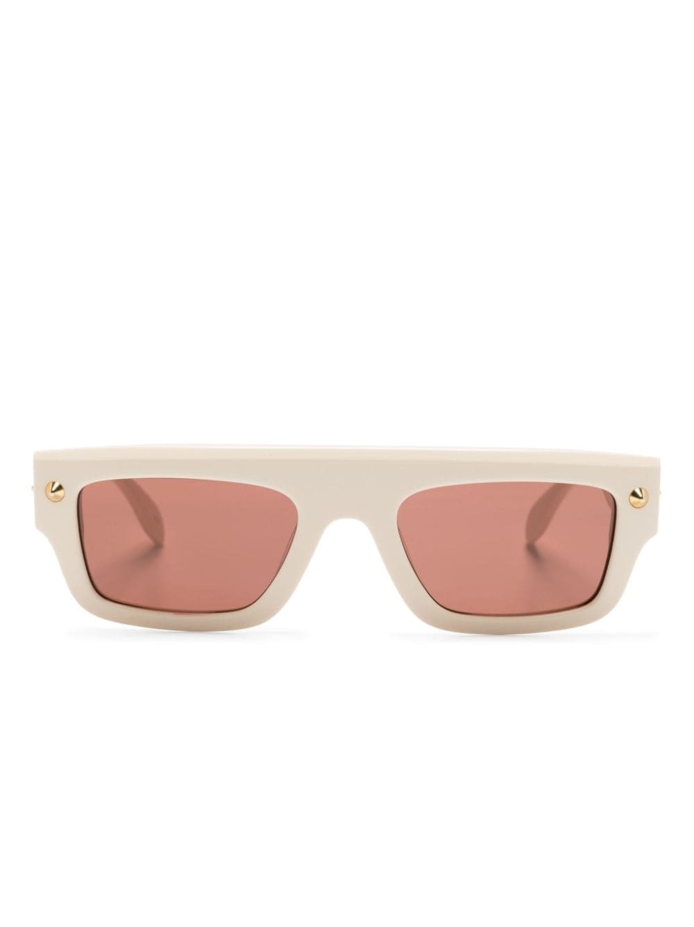 rectangle-frame sunglasses Highlights - Ivory white - Acetate - Rectangle frame - Uv-protective brown tinted lenses - Spike stud detailing at the front and arm - Logo-debossed arm - Straight arms with curved tips - These glasses come with a protective case. Made in Italy Composition Acetate 100% SIZE & FIT Measurement Arm Length 5.7 in(14.5 cm) Bridge Width 0.82 in(2.1 cm) Lens Diameter 2.04 in(5.2 cm) Total Width 5.7 in(14.5 cm)