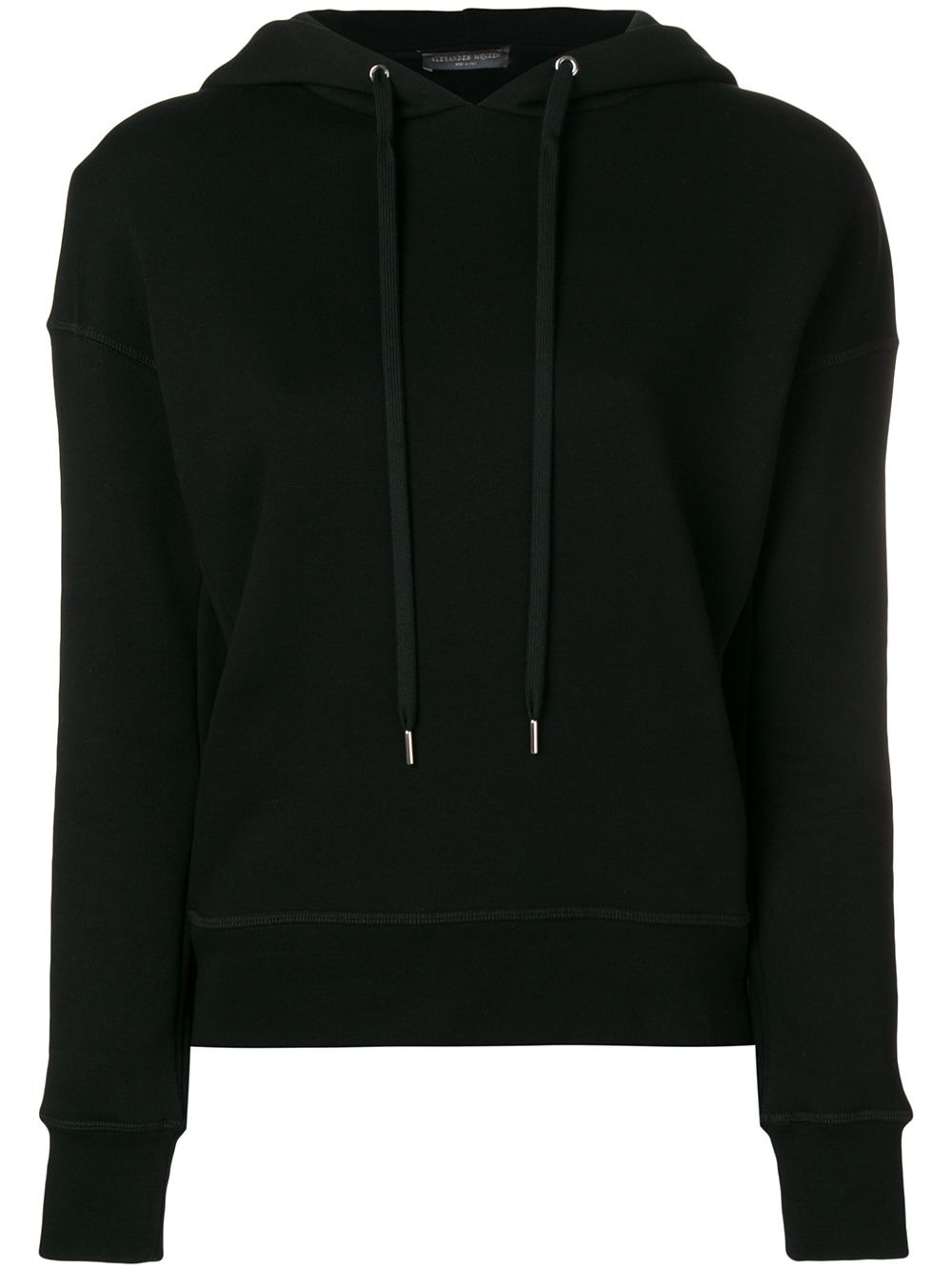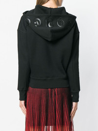 regular hoodie Who can twist and turn a garment, turning it into a high fashion masterpiece? Take this black cotton and lambskin blend regular hoodie from Alexander McQueen, featuring a drawstring hood, dropped shoulders, a ribbed hem and cuffs and an embroidered design on the hood. Made in Italy Composition Cotton 100%, Lamb Skin 100% SIZE & FIT Model measurements Height 5 ft 10 in(1.78 m) Bust/Chest 34.25 in(87 cm) Hips 35.03 in(89 cm) Waist 26.37 in(67 cm) Washing instructions Machine Wash