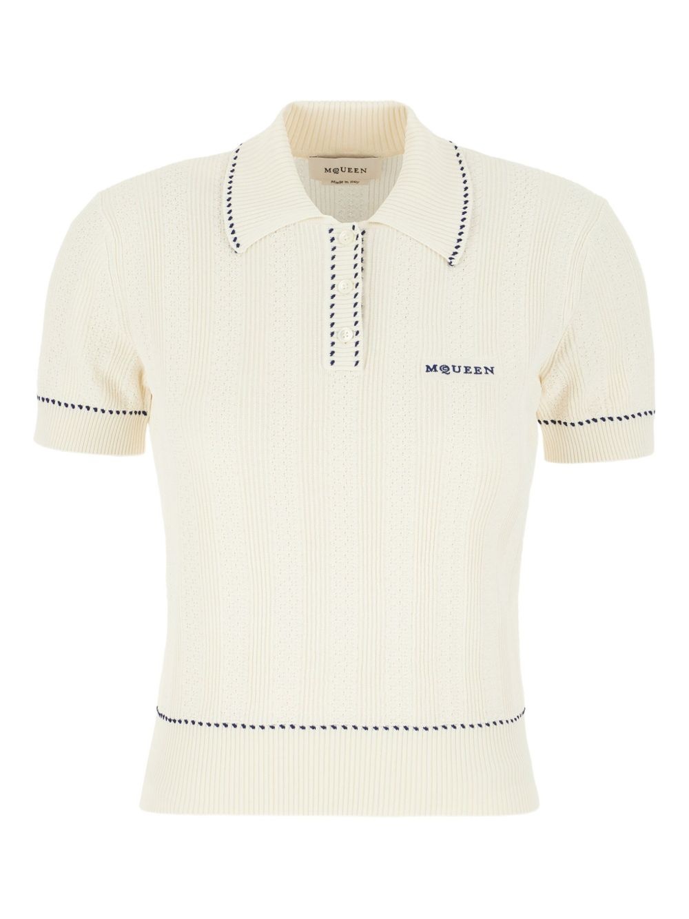 ribbed polo top Highlights - Off-white - Ribbed knit - Short sleeves - Embroidered logo - Polo collar Made in Italy Composition Viscose 94%, Polyester 6% Washing instructions Read Manufacturer Guidelines