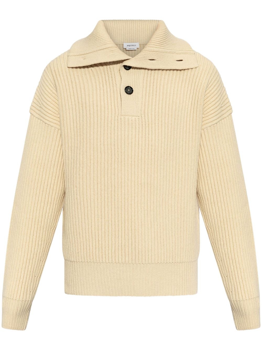 ribbed sweater Highlights - Light beige - Front button placket - Drop shoulder - Ribbed trim Made in Italy Composition Wool 90%, Cashmere 10%