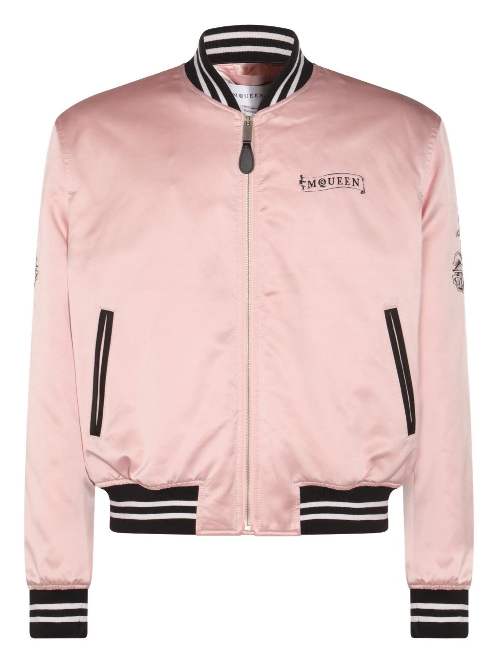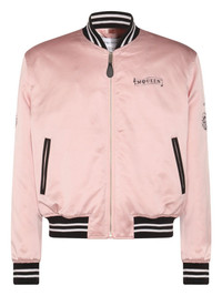 rose-embroidery satin bomber jacket Highlights - Light pink - Satin texture - Embroidered roses - Rib-knit collar - Central zip fastening - Back print Made in Italy Composition Cotton 50%, Viscose 50% Washing instructions Read Manufacturer Guidelines
