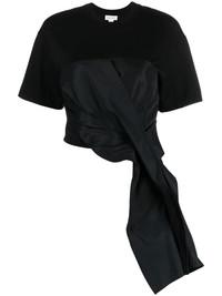 ruched-detail asymmetric T-shirt Alexander McQueen is a master at incorporating intricate details into casual clothing. This short-sleeved T-shirt is made of cotton in black and has ruched detailing and asymmetric hem. Highlights - Black - Cotton - Jersey knit - Ruched detailing - Twist detailing - Round neck - Short sleeves - Asymmetric hem Made in Italy Composition Cotton 100%, Polyester 100% Outer: Cotton 100% SIZE & FIT Model measurements Height 5 ft 11 in(1.8 m) Bust/Chest 31.49 in(80 cm) Hips 35.82 in(91 cm) Waist 24.8 in(63 cm) Measurement HIPS 24.4 in(62 cm) FittingInformation This piece fits true to size. We recommend you get your regular size Cut for a slim fit Made with a mid-weight fabric Washing instructions Dry Clean Only