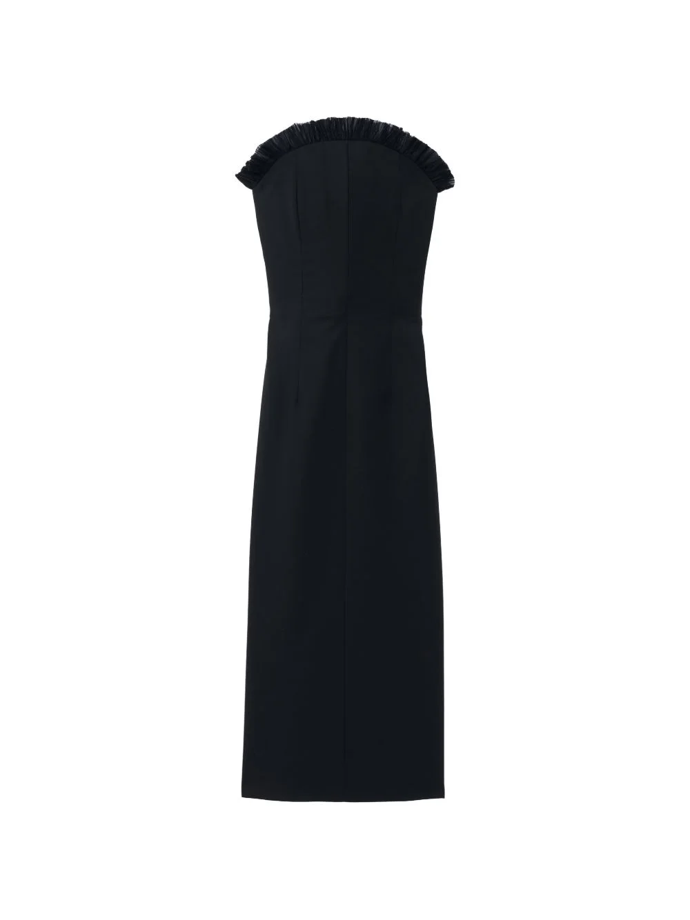 ruffled midi dress Highlights - Black - Ruffle trim - Fitted waist - Midi length - Sleeveless - Straight hem Made in Italy Composition Wool 100% Washing instructions Read Manufacturer Guidelines