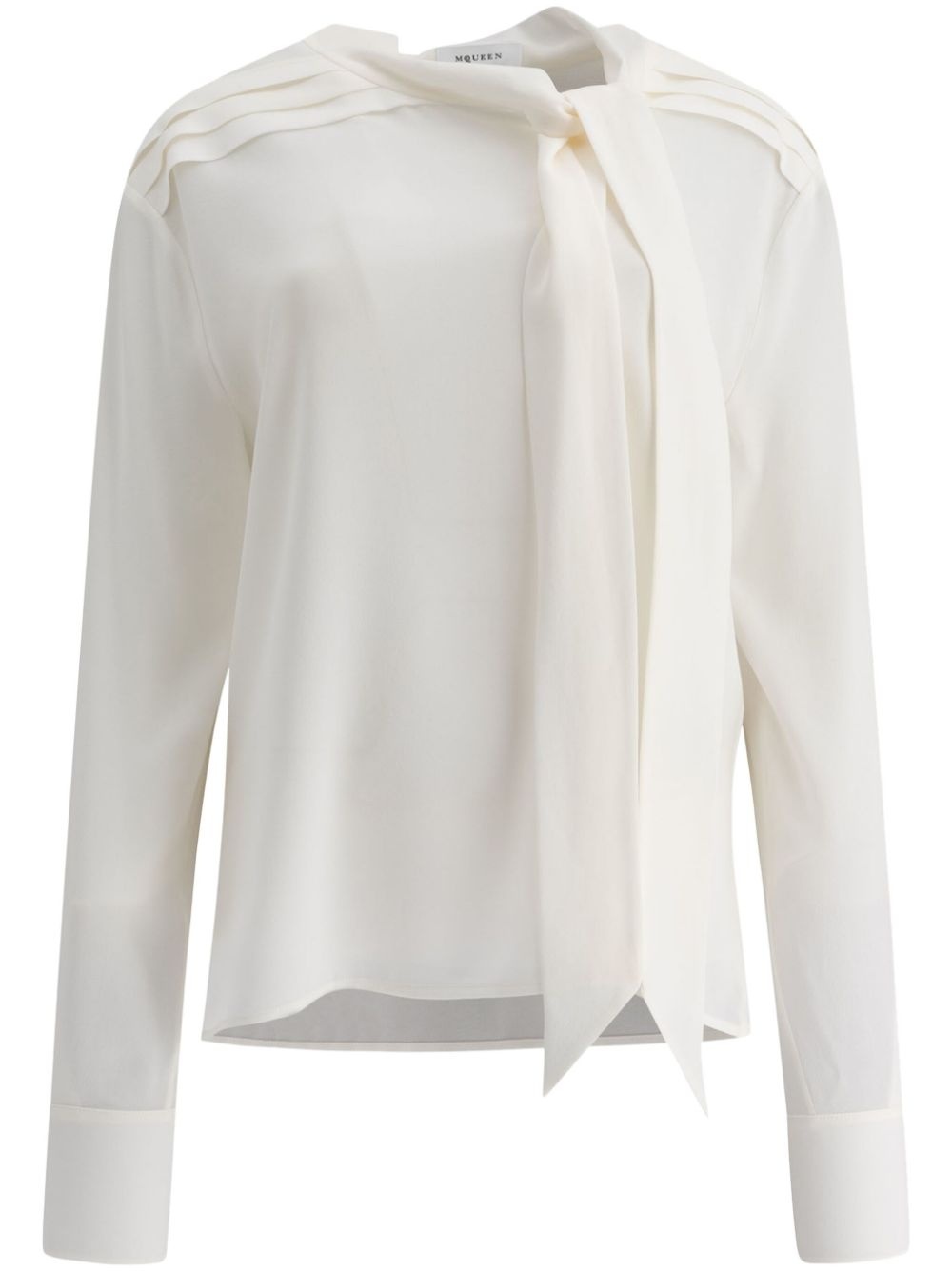 scarf-detailed georgette shirt Highlights - White - Georgette - Scarf detailing - Pintuck detailing - Long sleeves Made in Italy Composition Silk 100%