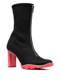 Scuba 85 boots black/coral leather almond toe front zip fastening contrasting rubber sole high heel Made in Italy Composition Outer: Fabric 100% Lining: Fabric 100%, Leather 100% Sole: Leather 100%, Rubber 100% SIZE & FIT Measurement HEEL 3.34 in(8.5 cm) CIRCUMFERENCE 10.23 in(26 cm) Sole height 0.78 in(2 cm) HEIGHT 7.87 in(20 cm)