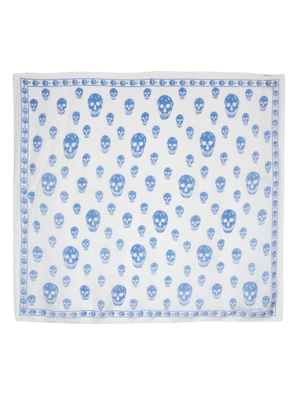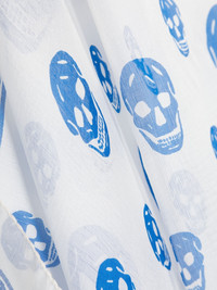 silk skull-print scarf Incorporate Alexander McQueen's signature skull motif into everyday looks with this iconic silk scarf. Featuring finished edges and a logo print, this coveted skull-stamped piece exudes edge and sophistication; trademarks of the Alexander McQueen brand. Highlights - Blue/white - Silk - Skull print - Logo print to the front - Rectangle shape - Finished edge Made in Italy Composition Silk 100% SIZE & FIT Measurement LENGTH 47.24 in(120 cm) WIDTH 40.94 in(104 cm) Washing instructions Dry Clean Only
