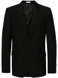 single-breasted suit jacket Exude style and sophistication in this single-breasted suit jacket from Alexander McQueen. Made from a wool-mohair blend it is designed with notched lapels and a tailored aesthetic. Highlights - Black - Wool-mohair blend - Notched lapels - Jetted chest pocket - Long sleeves - Buttoned cuffs - Front button fastening - Two front flap pockets - American rear vent - Full lining Made in Italy Composition Lining: Cotton 100%, Cupro 100%, Viscose 100% Outer: Wool 75%, Mohair 25% SIZE & FIT Model measurements Height 6 ft 1 in(1.85 m) Bust/Chest 35.82 in(91 cm) Hips 37.79 in(96 cm) Waist 29.13 in(74 cm) Measurement CHEST 40.15 in(102 cm) SLEEVE LENGTH 26.77 in(68 cm) LENGTH 30.31 in(77 cm) WAIST 37.79 in(96 cm) FittingInformation Designed for a slim fit, offering a comfortable fit that sits just away from the body The adjustable tabs allow for fitted preferences Made from a midweight non-stretch fabric This piece fits true to size – take your usual size Washing instructions Dry Clean Only