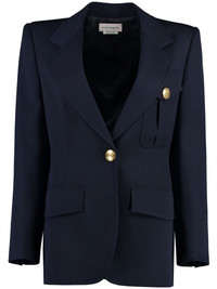 Military single-breasted blazer Highlights - Navy blue - Wool - Embossed gold-tone buttons - Notched lapels - Front button fastening - Long sleeves with buttoned cuffs - Three front flap pockets - Central rear vent - Gold-tone hardware Made in Italy Composition Outer: Wool 100% Lining: Cupro 100% SIZE & FIT Measurement SLEEVE LENGTH 16.14 in(41 cm) LENGTH 27.55 in(70 cm) WAIST 30.7 in(78 cm) BUST 32.28 in(82 cm) FittingInformation Designed for a slim fit that sits just away from the body offering a close yet comfortable fit The internal shoulder pads offer a structured shape Made from a midweight non-stretch fabric This piece fits true to size – take your usual size Washing instructions Dry Clean Only