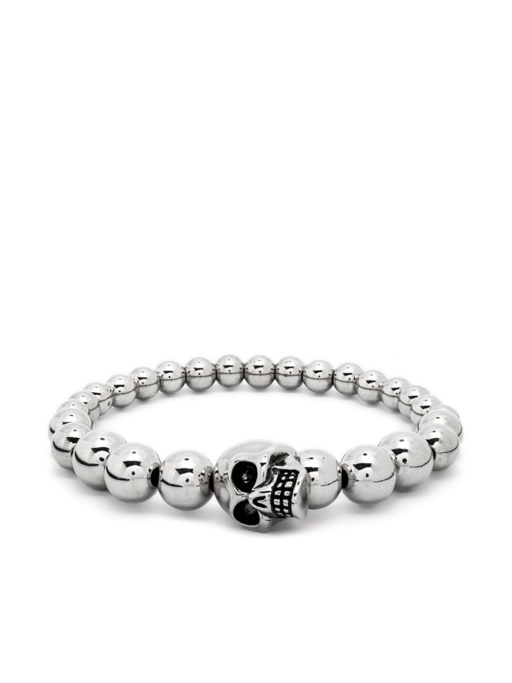 skull-charm beaded bracelet Highlights - Silver-tone - Brass - Bead embellishment - Skull charm - Elasticated band - Slip-on style Made in Italy SIZE & FIT Model measurements Height 5 ft 11 in(1.8 m) Bust/Chest 33.07 in(84 cm) Hips 37 in(94 cm) Waist 25.59 in(65 cm) Measurement CIRCUMFERENCE 6.69 in(17 cm) Minimum Length 0.78 in(2 cm) PENDANT LENGTH 0.47 in(1.2 cm) WIDTH 0.31 in(0.8 cm)
