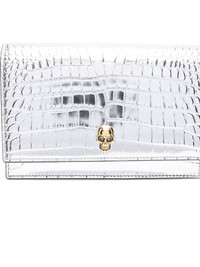 skull-embellished crocodile-effect bag Highlights - Silver - Crocodile-effect leather - Skull embellishment - Chain strap - Flap closure - Magnetic fastening Made in Italy Composition Outer: Calf Leather 100% SIZE & FIT Model measurements Height 5 ft 10 in(1.77 m) Bust/Chest 33.07 in(84 cm) Hips 37 in(94 cm) Waist 24.8 in(63 cm) Measurement DEPTH 1.96 in(5 cm) HEIGHT 4.72 in(12 cm) WIDTH 7.48 in(19 cm)