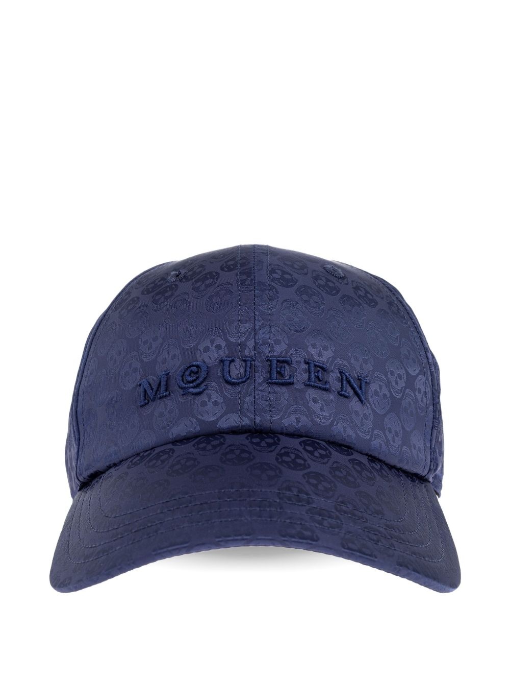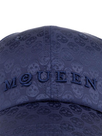 skull-embossed cap Highlights - Navy blue - Embossed skull pattern - Front logo lettering - Curved brim - Adjustable strap at the back Made in Italy Composition Polyamide 100%