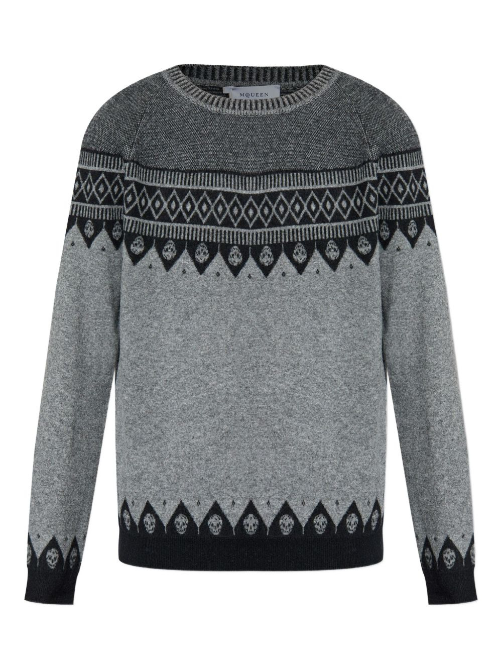 skull-motif wool sweater Highlights - Grey - Wool - Geometric pattern - Skull motif - Long sleeves - Round neck Made in Italy Composition Wool 100% Washing instructions Read Manufacturer Guidelines